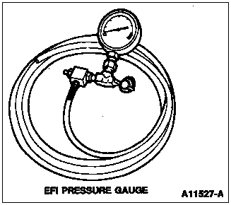 Electronic Fuel Injection Pressure Gauge EFI/CFI only, Tool T80L-9974-A or equivalent. (Use instructions. For specific applications, refer to Fuel/Engine Service Manual Group.)