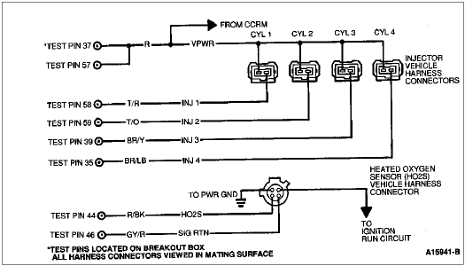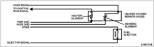 The Heated Oxygen Sensor (HO2S) reacts with the oxygen in the exhaust gases and generates a voltage based on this reaction. A low voltage indicates too much oxygen or a lean condition. A high voltage indicates not enough oxygen or a rich condition. The fuel injector is a typical on/off device. The amount of fuel delivered is determined by how long the injector is held open.