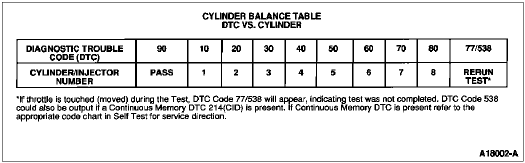 The DTM switches each injector OFF and ON one at a time. Diagnostic Trouble Codes (DTC) correspond to the cylinder number (i.e., DTC 30 indicates a problem with cylinder No. 3, a DTC 90 indicates a pass). The DTM is designed to aid in the detection of a weak or non-contributing cylinder. The Pinpoint Test Steps are designed to isolate only EEC related problems.