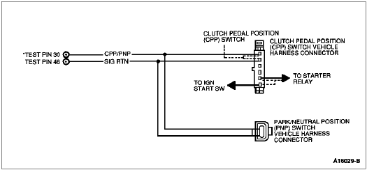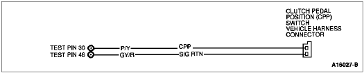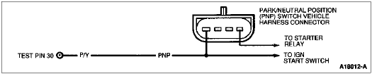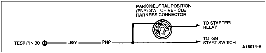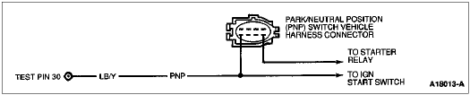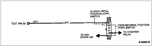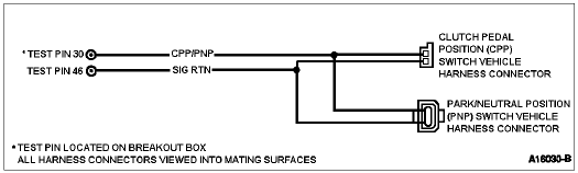 The Neutral Drive Input gives an indication of the transmission load to the Powertrain Control Module (PCM). This information is required for adjusting fuel/air ratio and idle speed. If the Park/Neutral Position (PNP) switch or Clutch Pedal Position (CPP) switch is closed, the circuit from Test Pin 30 will be grounded.