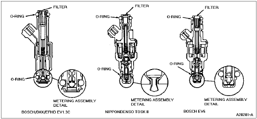 The Fuel Injector (Figure 5) is a solenoid operated valve that meters fuel flow to the engine. The injector is opened and closed a constant number of times per crank revolution. The amount of fuel is controlled by the length of time it is held open.