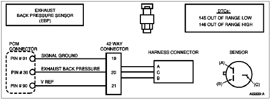 An EBP signal that is detected out of range (high or low) by the PCM will cause the engine to ignore the EBP signal and disable exhaust back pressure operation.