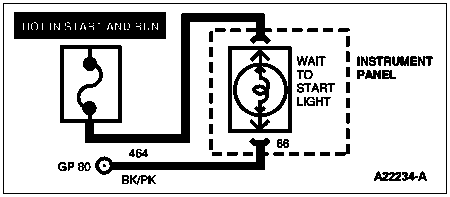 Glow Plug Wait Lamp — Is a lamp to intended to indicate to the operator when the glow plugs have been on long enough to crank the engine, controlled by the PCM. Wait light on time is a function of engine oil temperature, barometric pressure and battery voltage. ON time normally varies between 2 to 10 seconds. Note: Wait light ON time is independent from glow plug relay ON time.