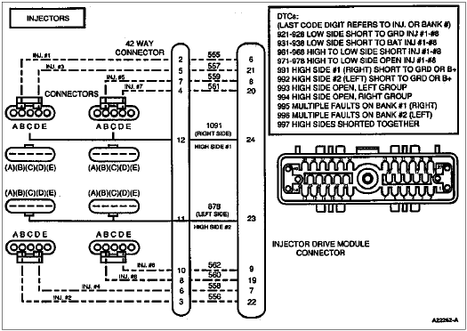 | Cylinder 2 B to 22 | <5 ohms | Injector low side | |