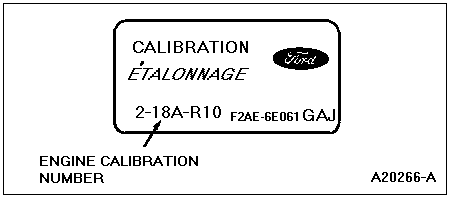 The Emission Calibration Number Label (Figure 2) contains the engine calibration number. The label is located on the driver's side door or door post pillar.