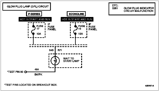 An open or shorted to ground glow plug relay or WAIT TO START lamp circuit can be detected by an on-demand output circuit check performed during the KOEO standard test.