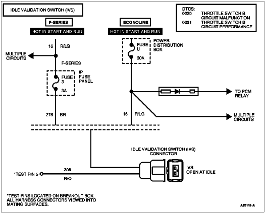 The idle validation switch (IVS) provides the powertrain control module (PCM) with a signal to verify when the accelerator pedal is in the idle position.