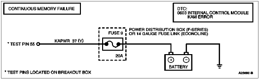 0603 = Internal control module keep alive memory (KAM) error.