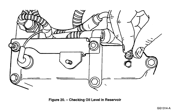 The level in the oil reservoir should also be checked. Remove the inspection plug in top of reservoir (Figure 20.) and check to see if the oil level in the reservoir is within one inch from the inspection plug.