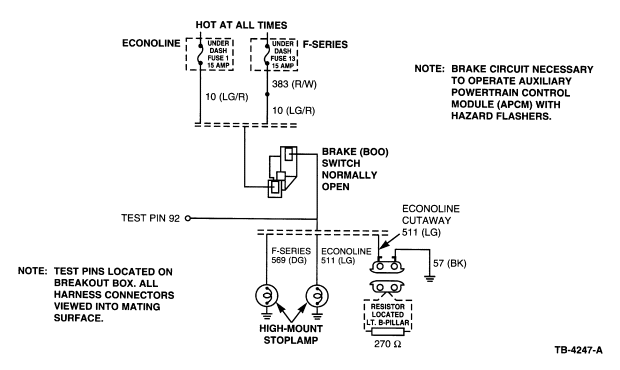 | NOTE: | THE STOPLAMP CIRCUIT IS NECESSARY TO OPERATE APCS WITH HAZARD FLASHERS. |